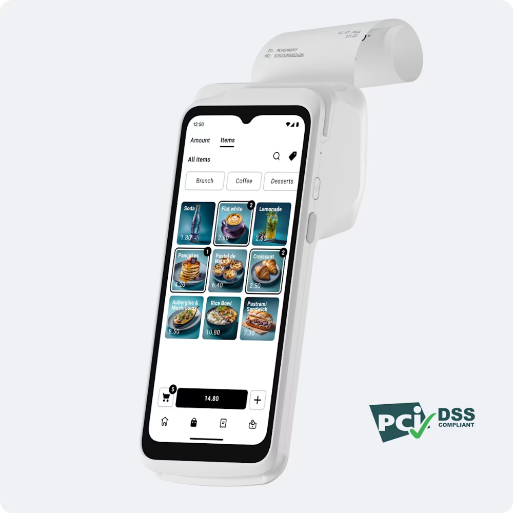 The SumUp Terminal is a powerful upgrade, combining a touchscreen POS system with a built-in receipt printer. It allows businesses to manage orders, track sales, and print receipts—all from one device.